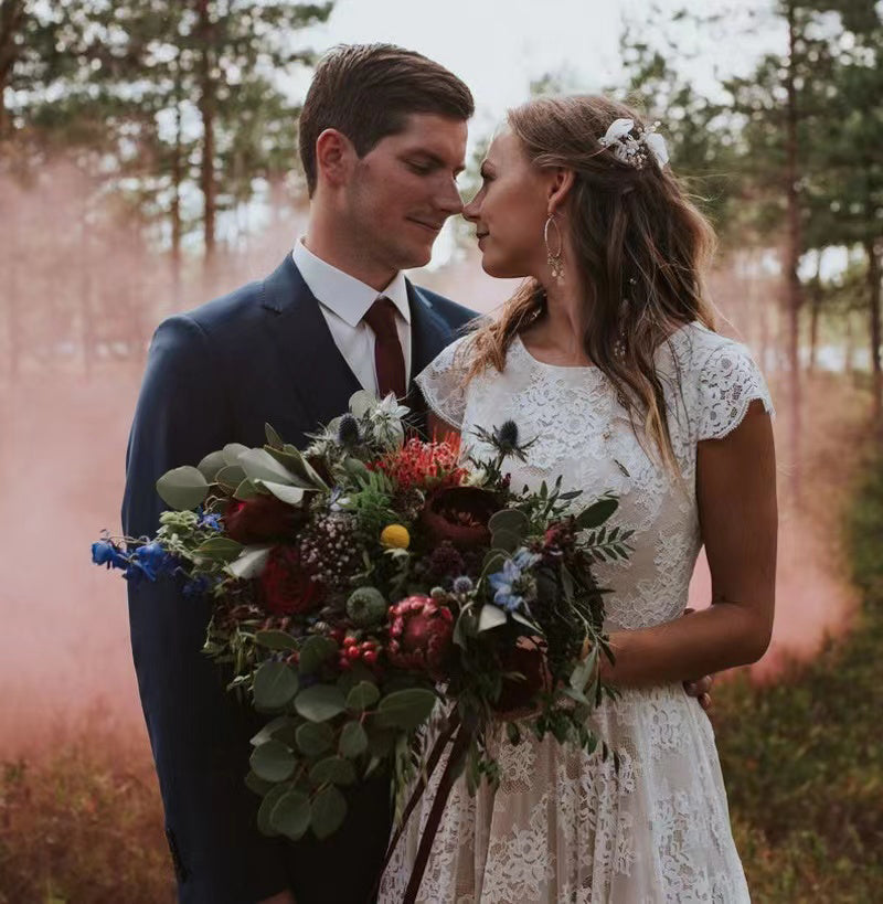 Cap Sleeves Lace V Back Beach Wedding Dresses, Elegant Bride Gowns WLD0137