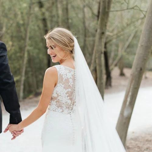Chic Sleeveless Long Wedding Dress with Lace Appliques, Long Train Beach Wedding Dress UQ2550