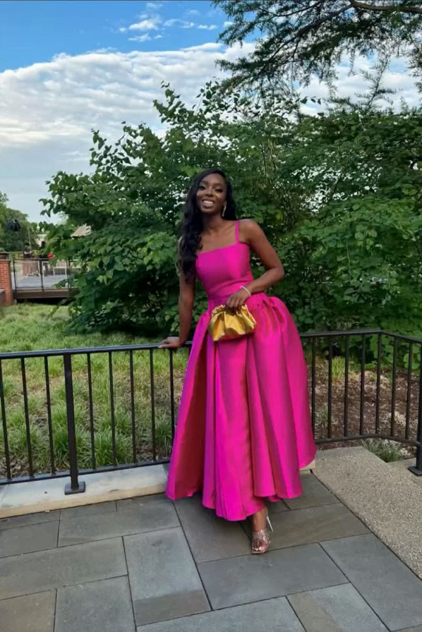 Fuchsia Spaghetti Straps A-Line Satin Long Formal Party Dress CHP0425