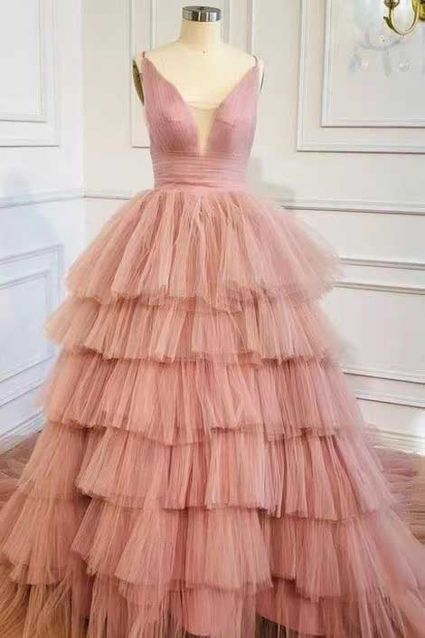 Gorgeous A Line Blue V-neck Sleeveless Prom Dresses,Long Formal Gown With Layers WLD0093