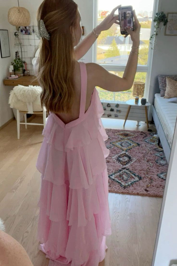 Halter Pink Chiffon A-Line Prom Dresses, Bridesmaid Dress CHP0419