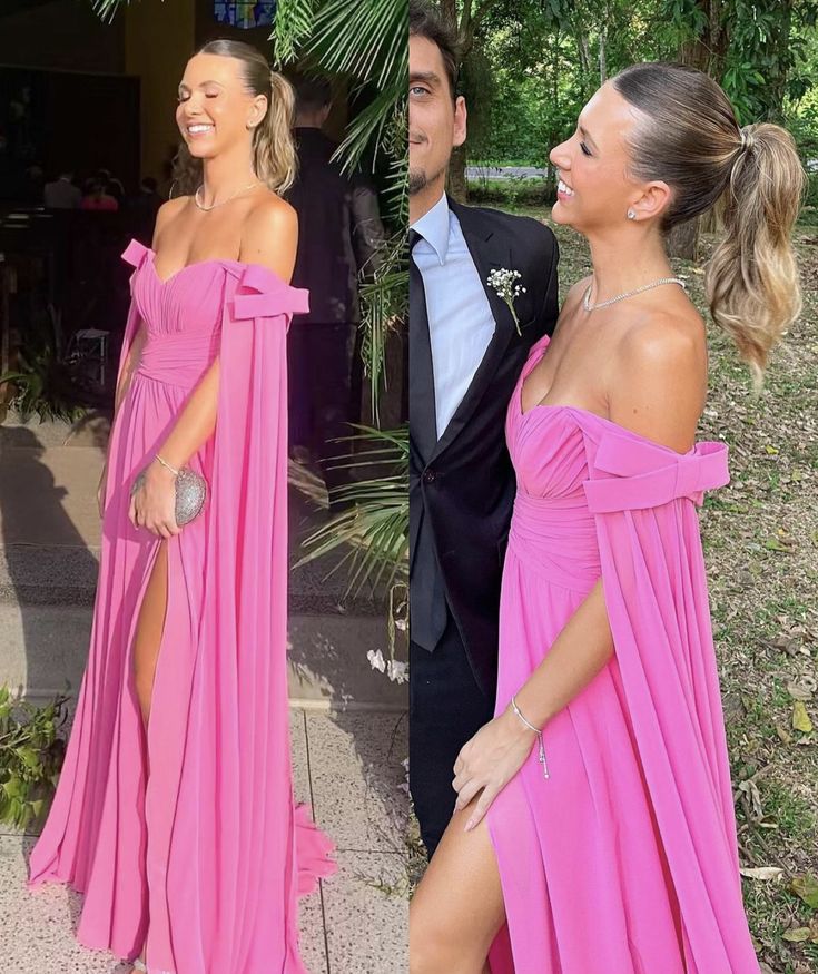 Hot Pink A Line Off Shoulder Prom Party Dress Long Formal Evening Dress CHP0416