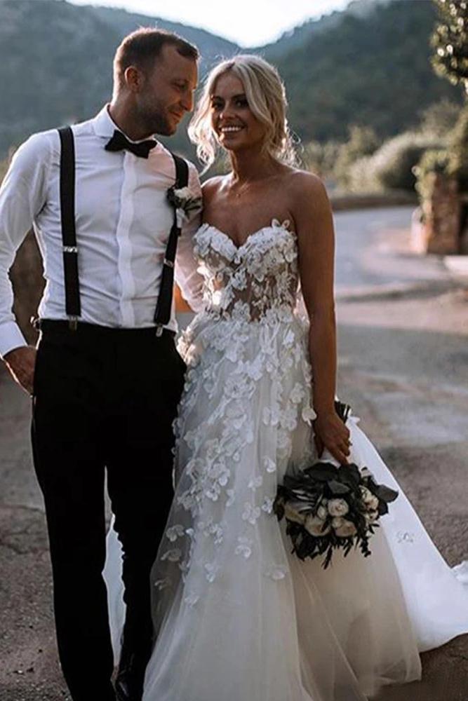 Hot Selling Sweetheart Wedding Dress with Flowers, A Line Tulle Wedding Dress with Appliques UQ2546