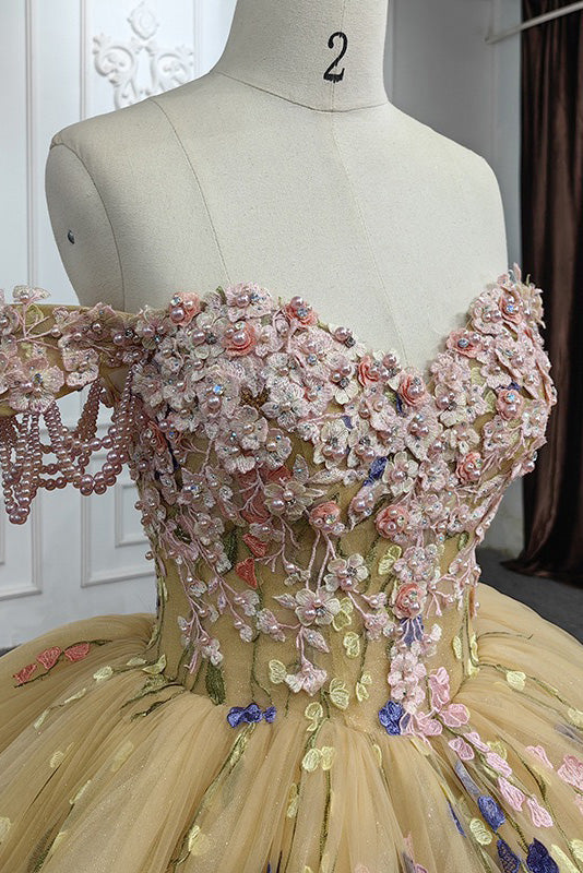 Off The Shoulder Ball Gown Prom Dress, Princess Quinceanera Dresses With Applique WLD0267