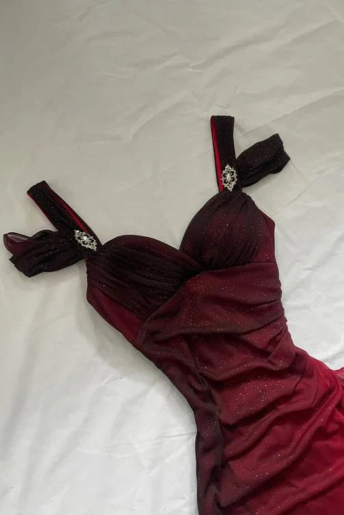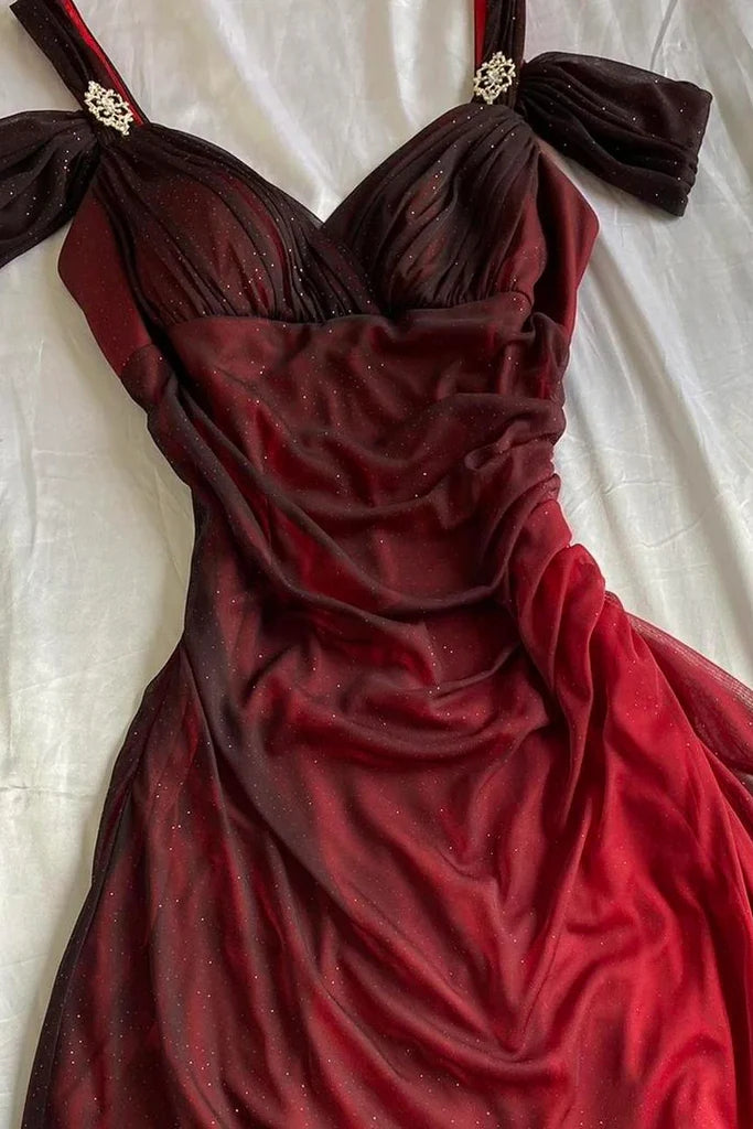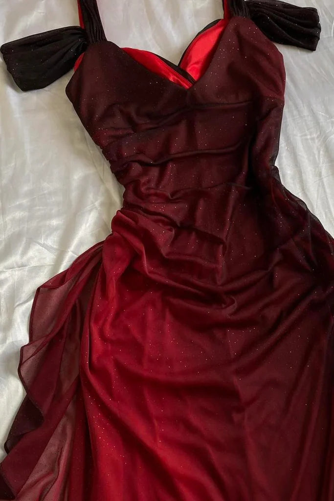 Ombre Straps Long Chiffon Prom Dress, A Line Floor Length Evening Dresses CHP0398