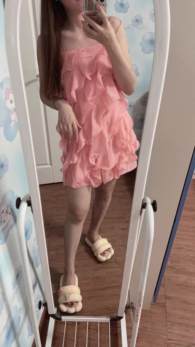 Spaghetti Straps Chiffon Short Prom Dress, Homecoming Dress With Ruffles WLD0158