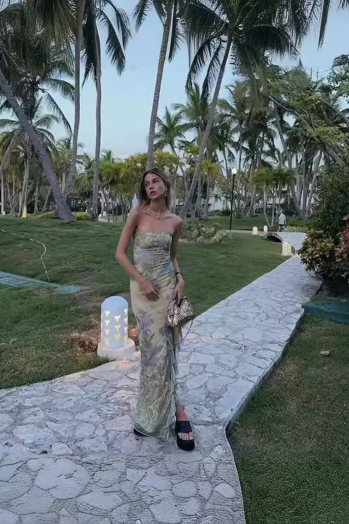 Strapless Sheath Floral Long Prom Dresses With Slit, Party Dress WLD0432