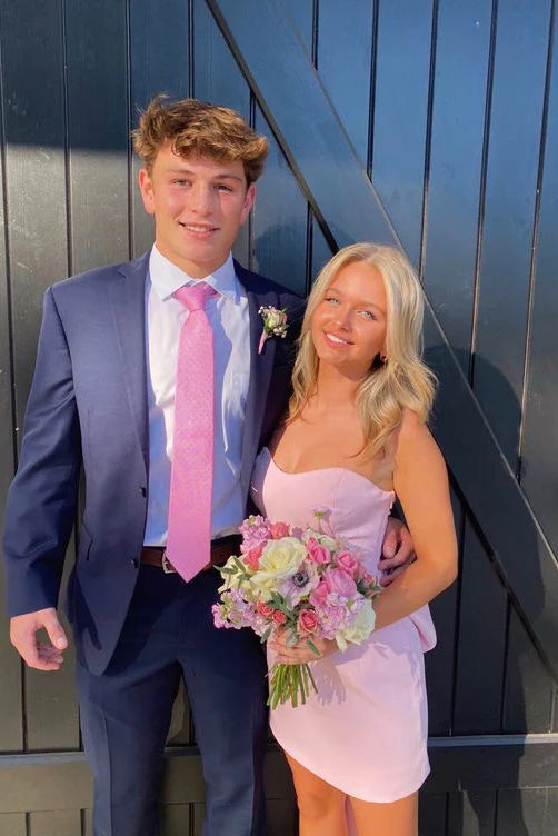 Sweetheart Pink Homecoming Dresses With Bowknot, A-Line Mini Graduation Dress WLD0183